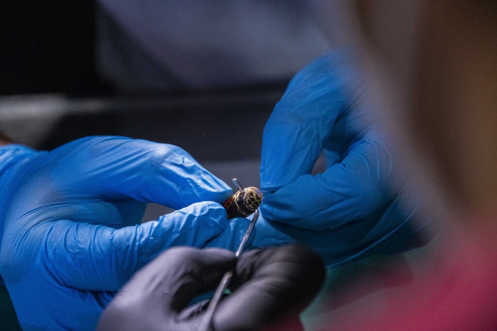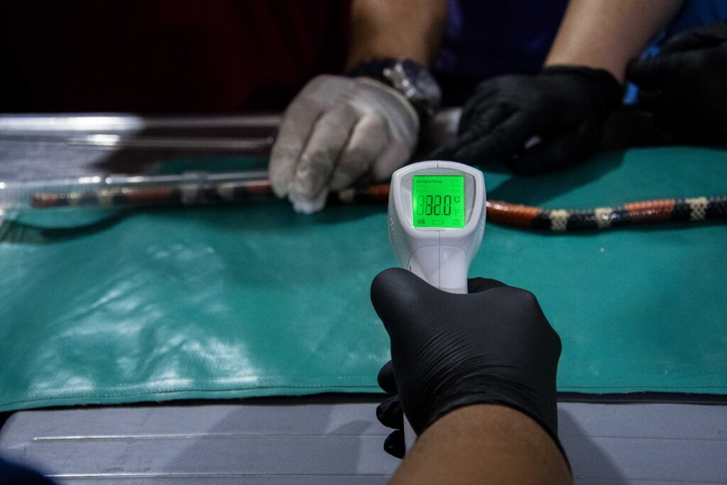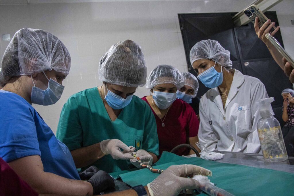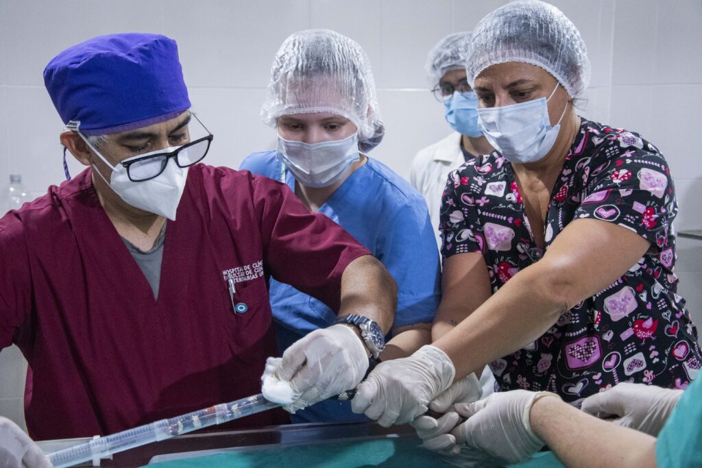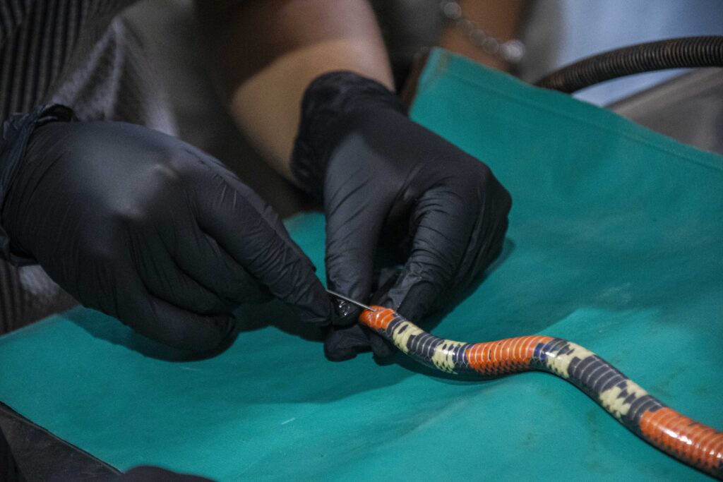 Dada la alta toxicidad del veneno de la serpiente coral, todas las maniobras se realizaron bajo anestesia, siguiendo estrictos protocolos de seguridad. El equipo de trabajo estuvo integrado por profesionales especialistas del Hospital Escuela Veterinario, MV Juan José López y Carolina Repetto.