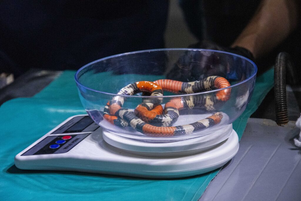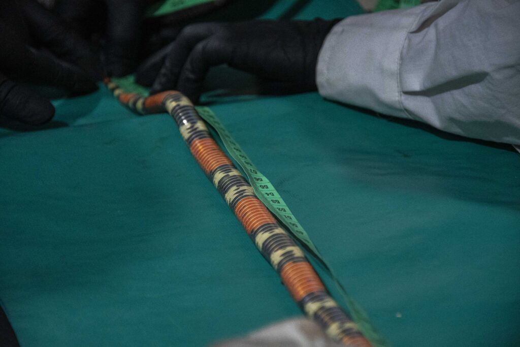 Tras el rescate, el animal fue trasladado al CISVA (Centro Interactivo de Serpientes Venenosas de Argentina)—espacio que forma parte de la estructura académica y científica de la Facultad— donde se efectuaron los procedimientos necesarios para su identificación taxonómica a cargo de la Lic. Gonzales Karen, y la determinación de su estado general, realizándose evaluación clínica, radiográfica, ecográfica, registro de longitud corporal, pesaje, sexado y extracción de veneno.