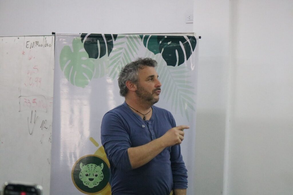 El encuentro, realizado en el Salón Schiffo, convocó a estudiantes, docentes, investigadores y público interesado en la conservación de la biodiversidad. Durante la exposición, el Dr. Donadio presentó los avances del proceso de reintroducción del yaguareté en los Esteros del Iberá, destacando cómo este regreso está recomponiendo interacciones ecológicas perdidas y señalando los próximos pasos para el cuidado del Gran Parque Iberá.