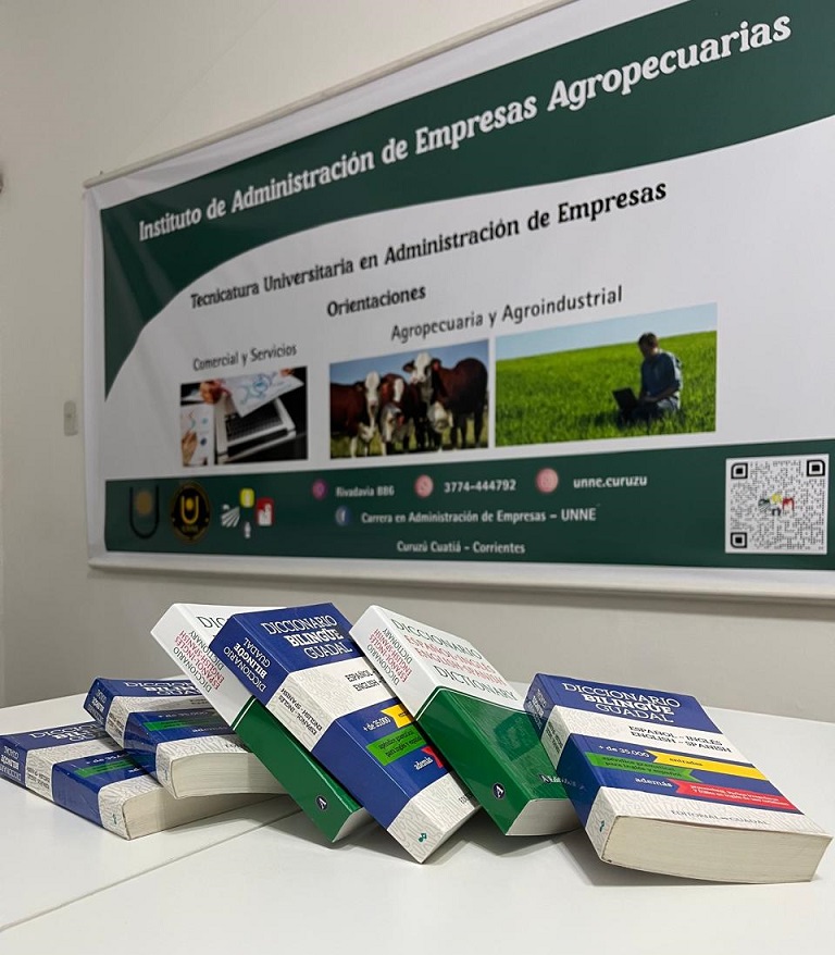 Integrante del Consejo Estudiantil de la Facultad de Ciencias Veterinarias entregó diccionarios de inglés para nuestra biblioteca.