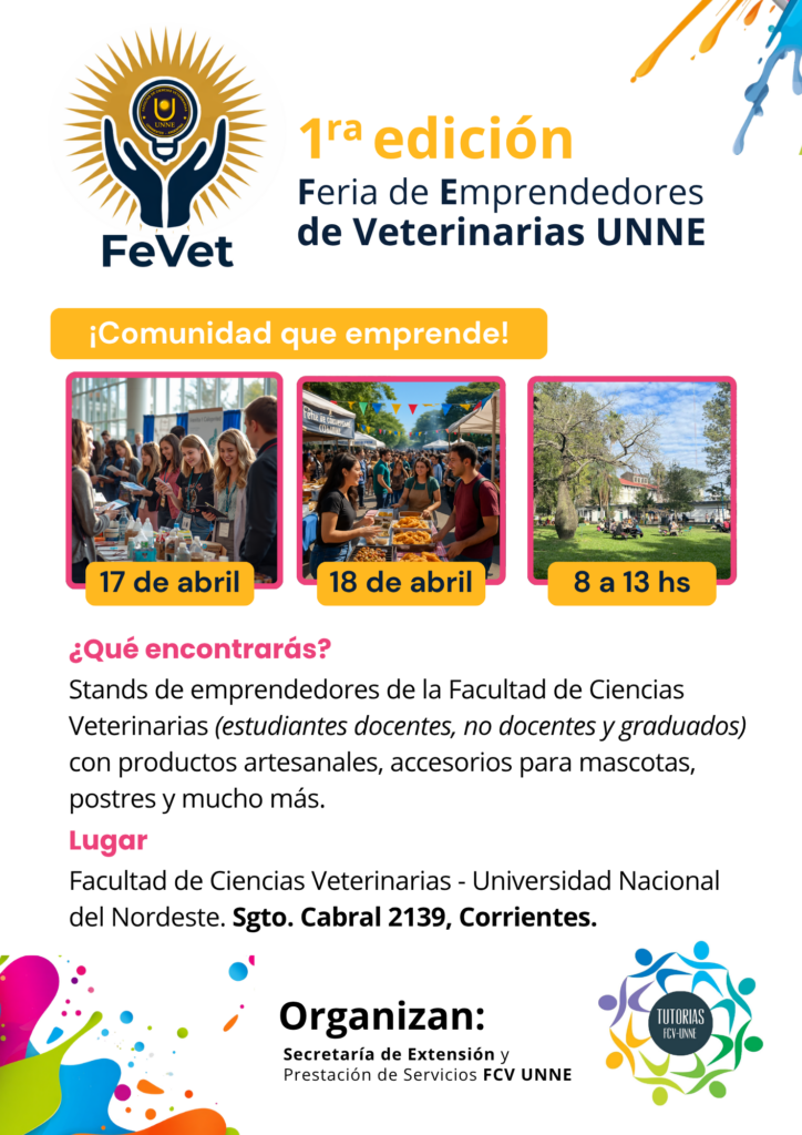La Facultad de Ciencias Veterinarias de la Universidad Nacional del Nordeste (UNNE) llevará a cabo la primera edición de la FEVet (Feria de Emprendedores de Veterinaria UNNE), una propuesta que busca fortalecer los vínculos dentro de su comunidad y promover el desarrollo de iniciativas productivas propias.