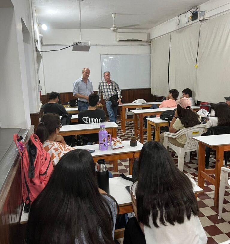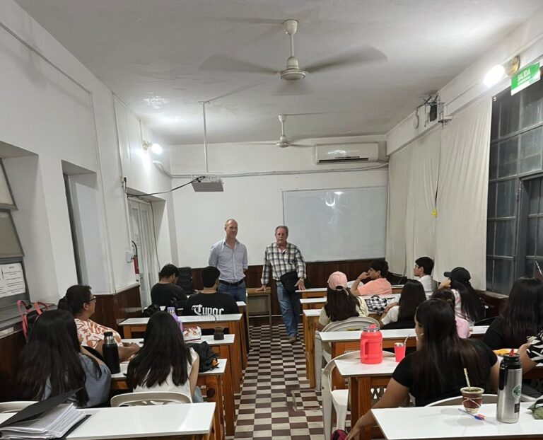 El día jueves 20 de noviembre de 2025, se vivió este momento tan emotivo como significativo, en una de nuestras aulas de nuestra sede de Rivadavia 886: el Profesor MV Gustavo Marcelo Burdet dictó su última clase frente a alumnos de la Tecnicatura en Administración de Empresas, orientación Agropecuaria, marcando el cierre de una etapa que deja huellas en quienes compartieron con él éste camino, como el Ingeniero Agrónomo Gerardo Zugasti, su compañero de fórmula en la cátedra “Procesos productivos para la Agroindustria”.